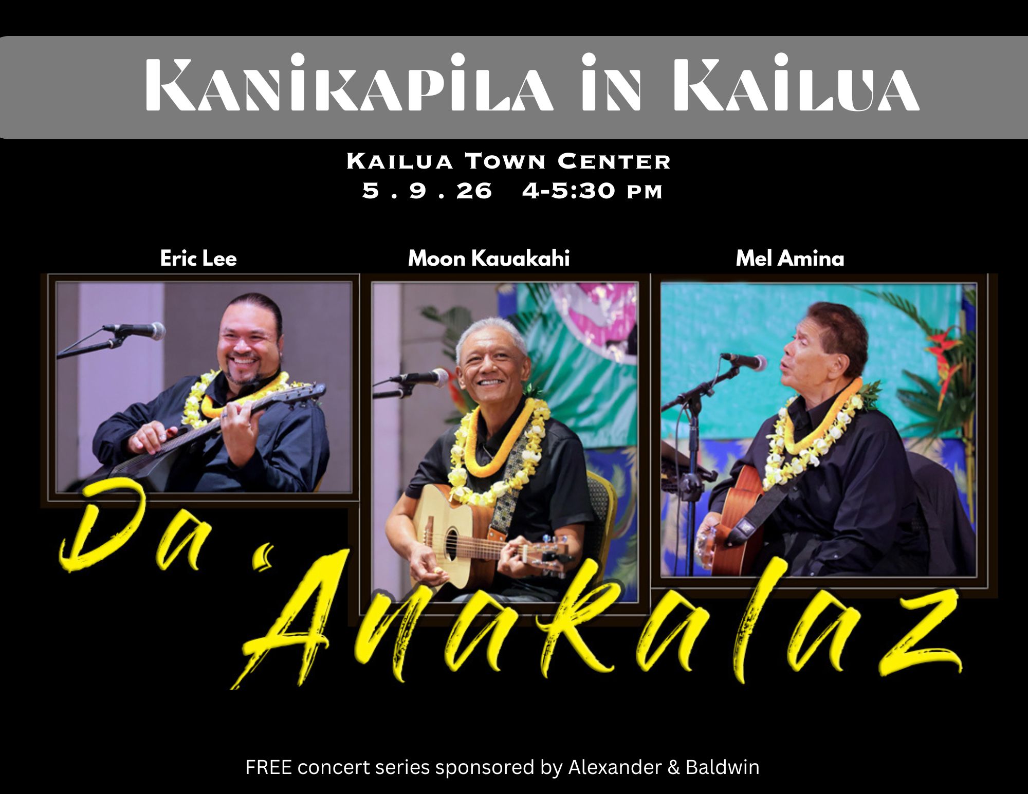 Join us every second Saturday of the month from 4 – 5:30pm for our free music series in the Kailua parking garage (behind Longs/CVS). April will feature music by Robi...